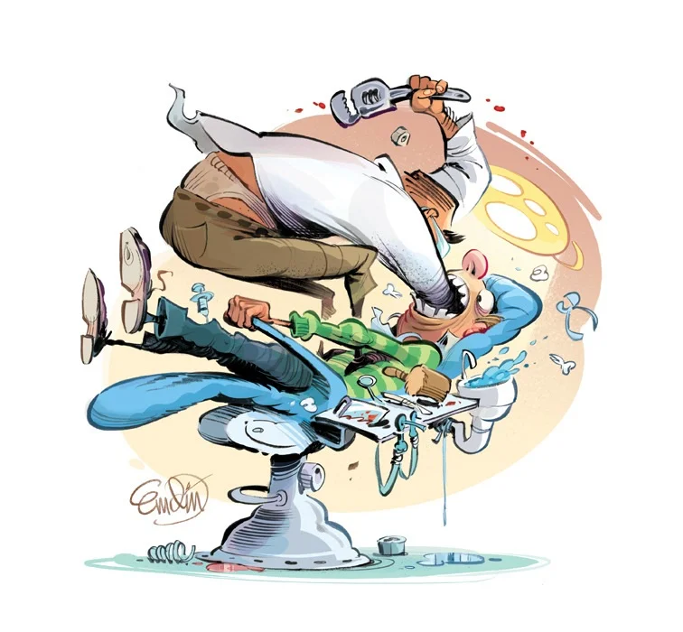 Original inks for a spot illustration published in The Weekly Standard magazine (USA). I've included the coloured, finished art as a reference. Art sold is black and white. Art is roughly 24cm x 23cm (9.5" x 9"). Paper size is A3 (42cm x 29.7cm / 16.5" x 11.75"). India ink, pen, pencil on 220gsm Winsor & Newton smooth surface heavy weight paper. The paper colour is off-white and has a very subtle grain. May contain faint pencil lines and working blemishes. No whiteout was used in this piece. FREE SHIPPING to Australia, $15 flat-rate worldwide. The art will be shipped securely in a tube. If you wish for it to be posted flat, please get in touch to arrange a quote.